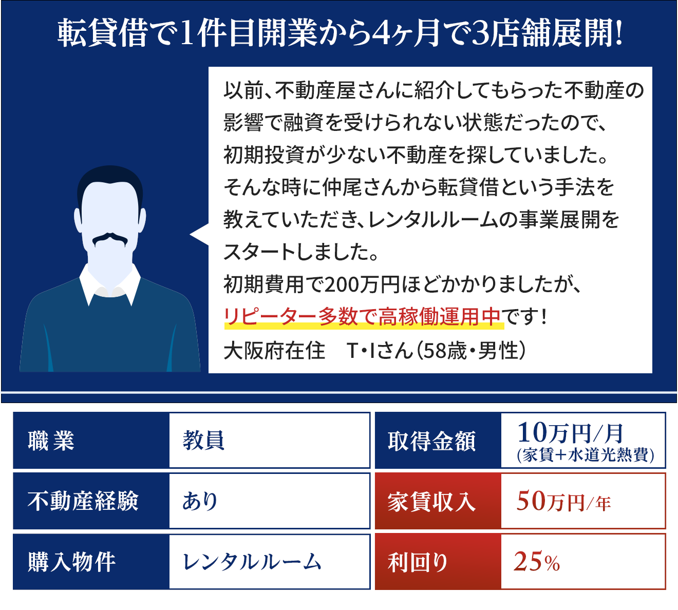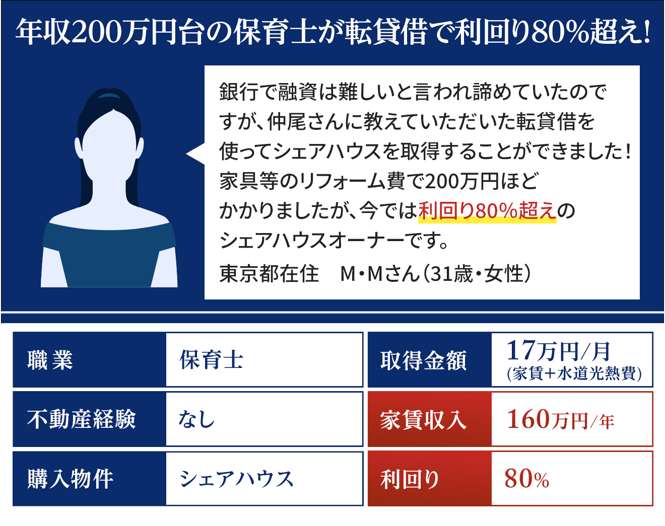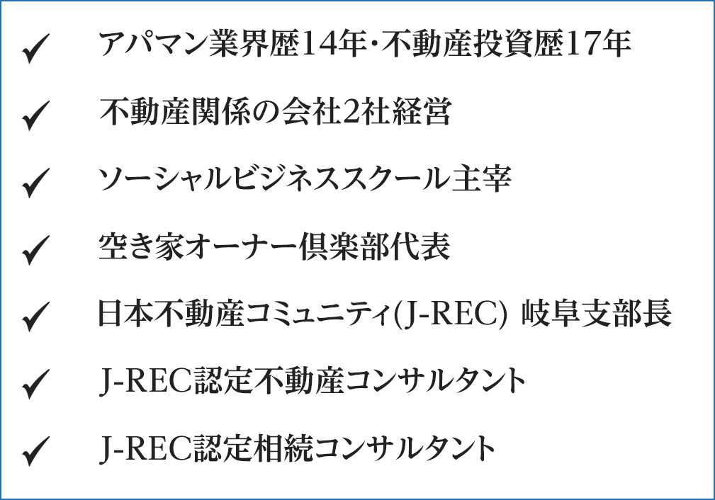 大学卒業後、東建コーポレーション株式会社に勤務し、シニア向けの新規事業などに従事。 転職後は株式会社ユニホー管理事業部にて年間150名以上の不動産オーナーから相談を受け、自らの経験を踏まえて、アドバイスを行ってきた。 現在は不動産コンサルタントやコミュニティの主催など、多方面で活躍している。